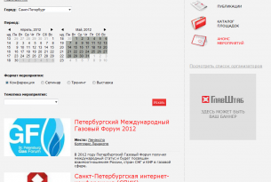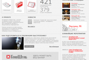 Портал "Конференц-Навигатор" разрабатывался по заказу коммуникационного агентства "ГлавШтаб" в первом квартале 2012 года.