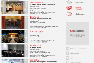 Основная задача портала - подбор и бронирование конференц-залов и выставочных площадок по всей России.